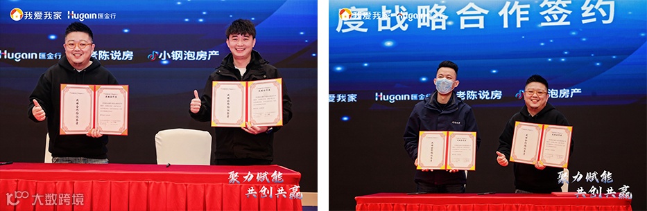 2月29日,“聚力·赋能"杭州我爱我家、汇金行联合杭州头部房产自媒体杭州老陈说房、杭州小钢泡房产举行了盛大的品牌签约战略合作发布会。此次发布会旨在“跨界融合”,传统渠道+新媒体的强强联合,为行业迎来一种全新的地产营销生态。