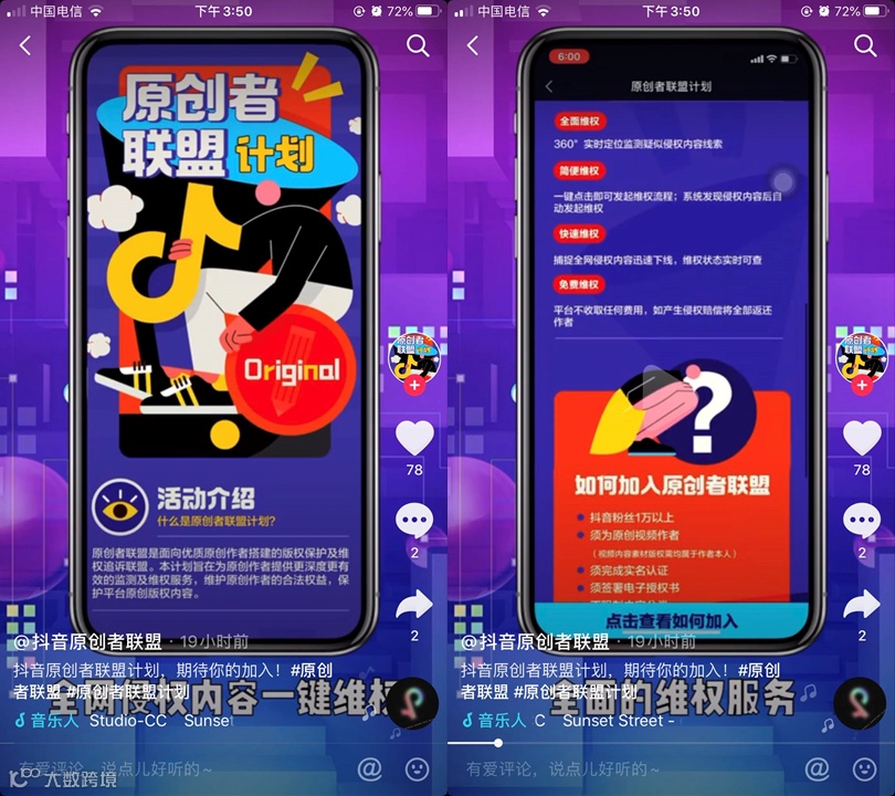 抖音上线原创者联盟计划,助力创作者免费维权