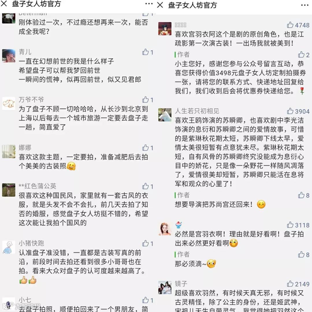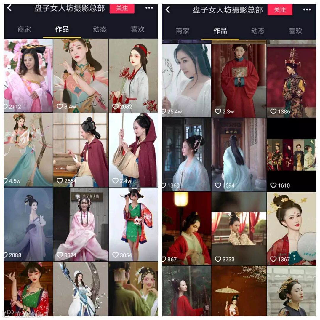 华美的古装、漂亮的明星和模特、惊喜的剧情.....作为古装摄影的大本家,盘子女人坊本身所拥有的源源不断的精美素材非常契合抖音这个平台,在内容方面占据了先天优势。