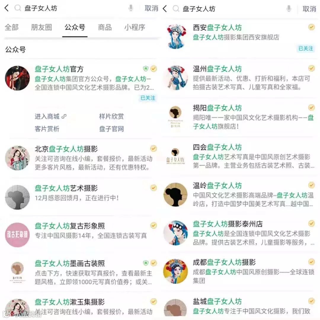在公众号方面,盘子女人坊搭建了一个账号矩阵。除了一个官方主账号,另外还有几个垂直型账号,以及几十个地域性账号,多个账号同时运作。