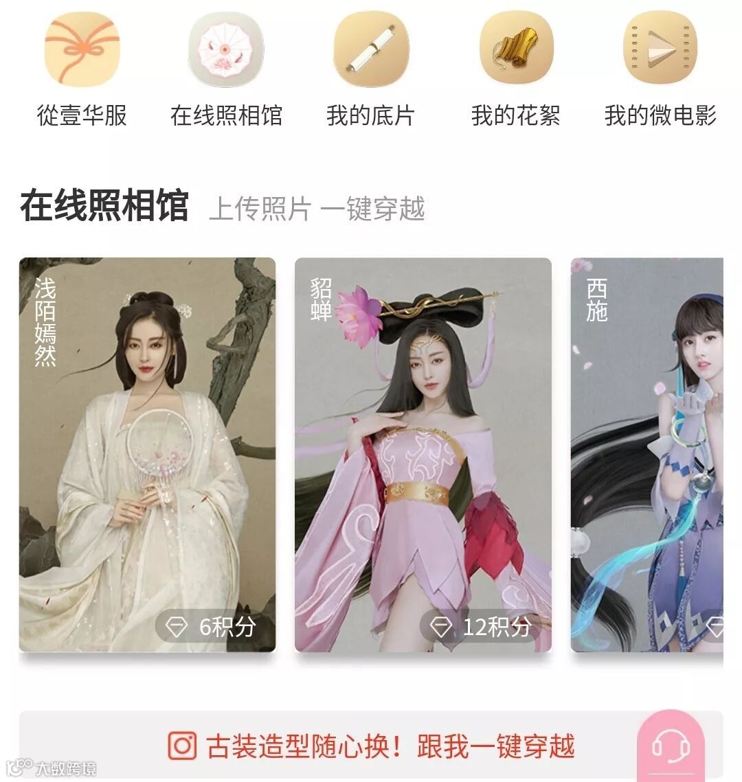 小程序方面,盘子女人坊的特色主要在于小程序内部的在线照相馆和一秒变装功能,使用户能够瞬间体验置身虚拟古装的场景。一般会放置在公众号文章中,助力引流。这一功能场景也为公司获取大量用户画像信息。