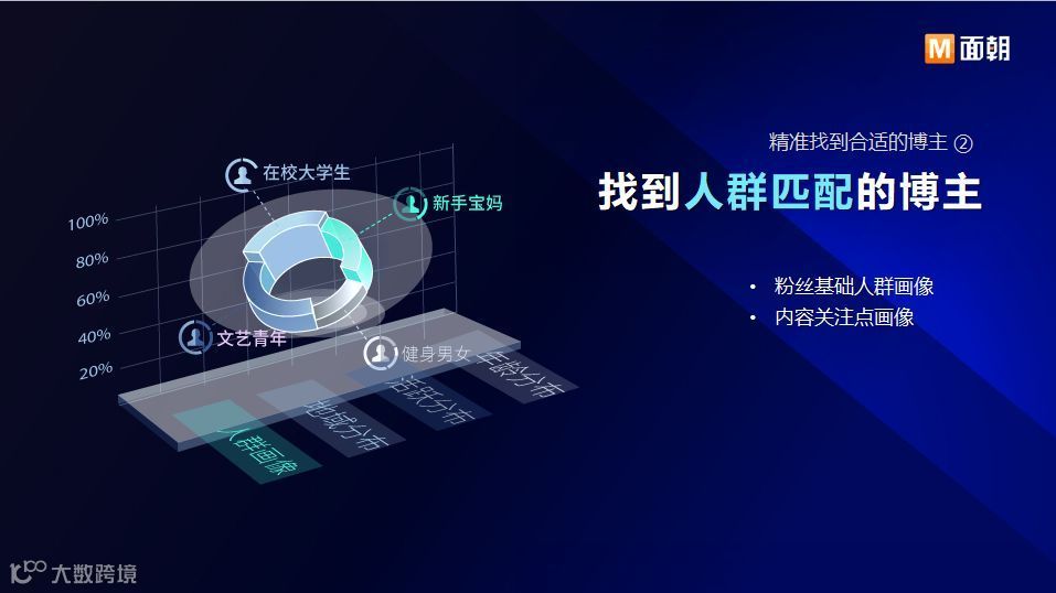 不同博主账号的内容形态可能是丰富多样的,如何保障投放的效果?最重要的一点就是用找到粉丝画像与商品匹配的博主。首先可以通过账号的基本画像做筛选,比如判断男女比例、年龄、地域分布等,再根据内容来做二次的精细筛选,比如女粉多的美妆博主,讲到护肤的时候声量表现特别好,而讲到护肤内容的时候,提到去闭口这个卖点的内容特别受关注,这样就可以一步步的把人群精细的筛选出来,提高投放的精准度。