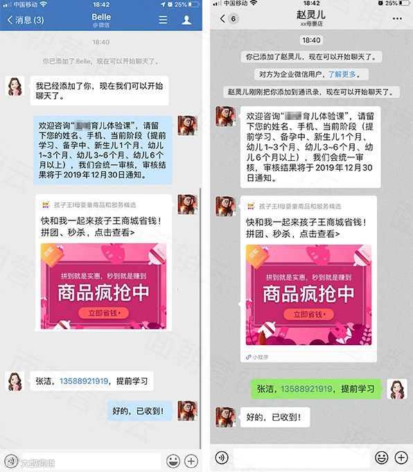 例如母婴、美妆等零售品牌,通过小程序商城+企业微信的形式,将线上线下用户资源整合,客户通过扫描二维码添加导购,导购可向客户自动回复内嵌产品活动、试用体验等小程序卡片,直接触达用户,用户点开后感兴趣,便可一键下单,在线上完成所有服务。
