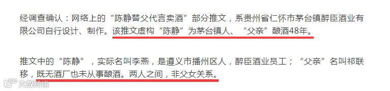 经仁怀市市场监管局对“陈静替父代言卖酒”一事的调查,广告涉嫌虚假宣传,因该内容和模式被进一步模仿学习,造成一定负面影响。原处3倍处罚,调高至5倍。