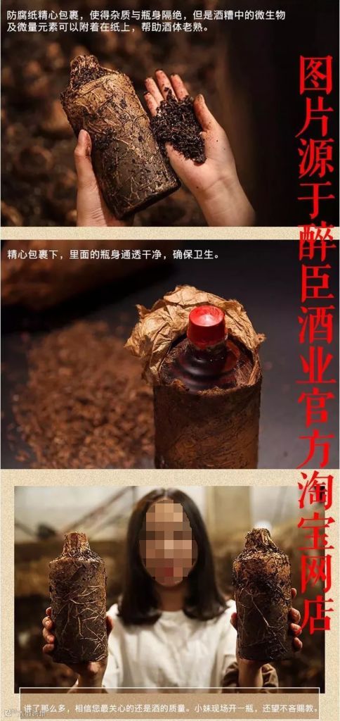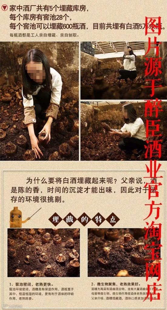 “将白酒埋藏在酒糟里,微生物聚集,使酒的口感更加醇香”。官方店铺中展示了产品的制作细节,不过截止写稿前,相关图片在x宝已经看不到。