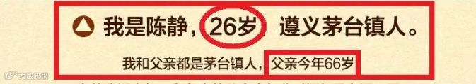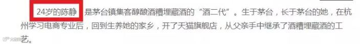 陈静:“26岁,遵义茅台镇人,父亲今年66岁。毕业于杭州xxx大学,毕业后有一个目标,那就是励志靠自己的努力替父亲卖酒”。