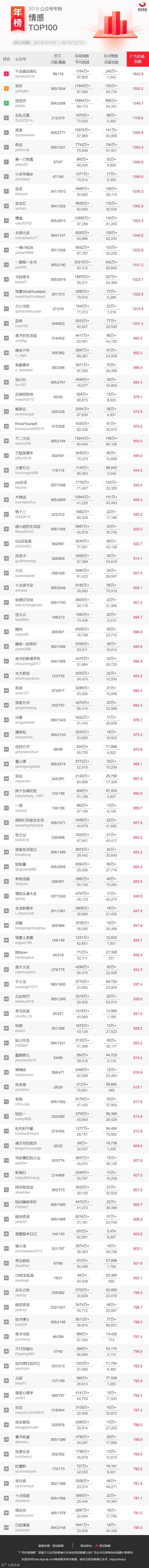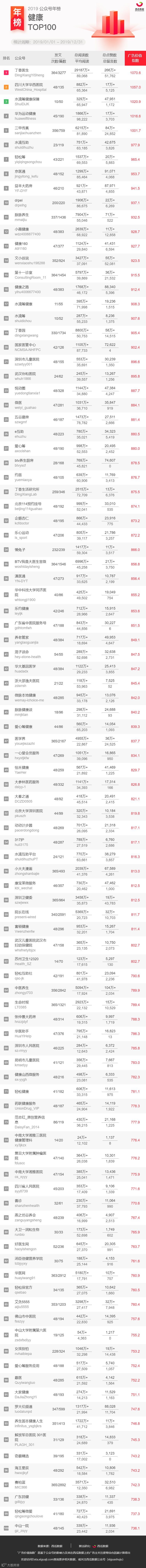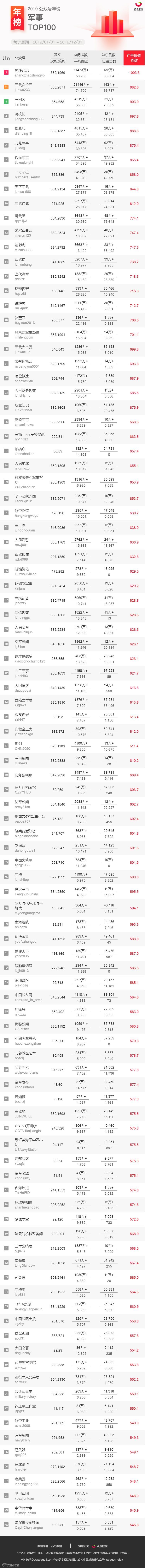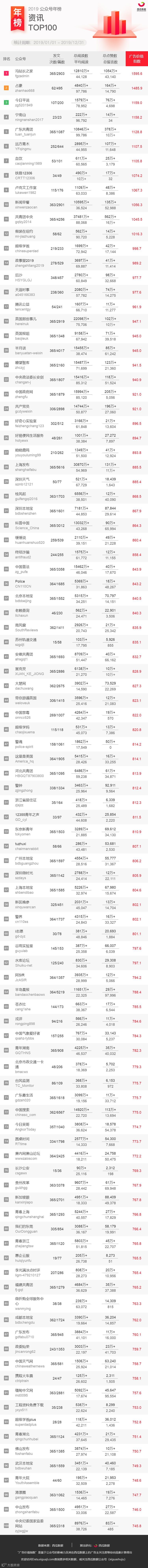 (注:本次所提供的公众号榜单,不包含媒体号与政务号在内。)