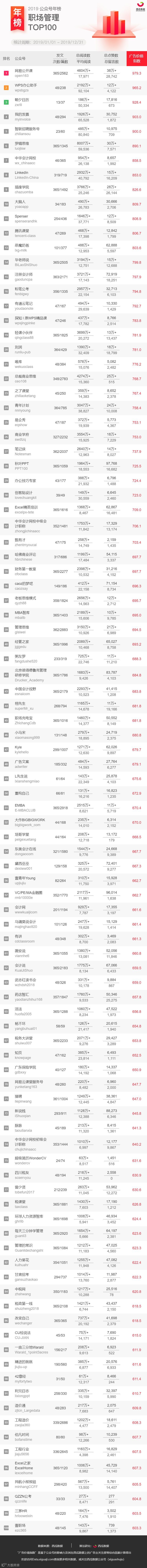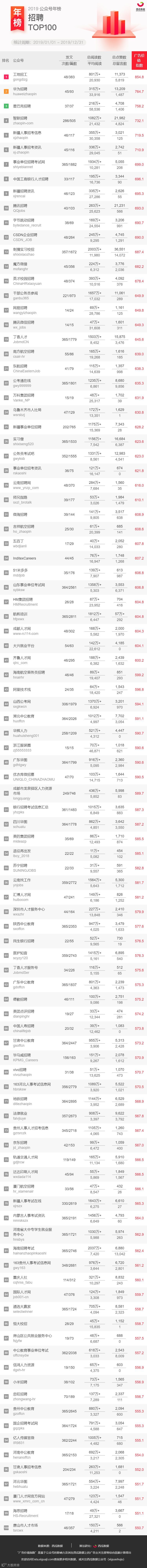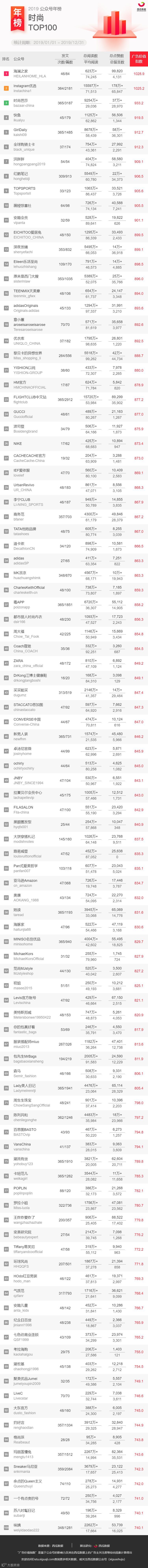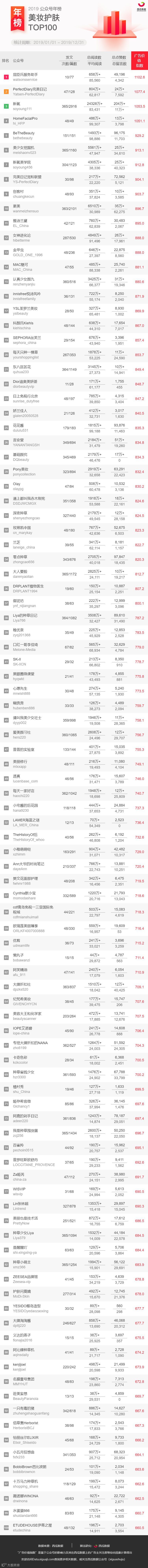 (注:本次所提供的公众号榜单,不包含媒体号与政务号在内。)