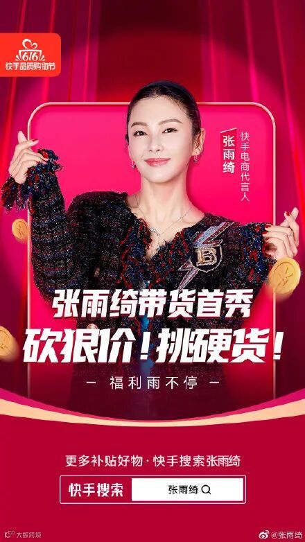 这段时间的快手,像是坐上了一艘乘风破浪的船,从内容到传播,一步步霸占大众的视野,全网刷屏的“奥利给”大叔版《看见》,宣布与京东达成合作,周杰伦入驻快手,网易CEO丁磊快手直播首秀,官宣“张雨绮”成为快手电商代言人,与京东合作推出双百亿补贴,今天又迎来了张雨绮在快手的直播首秀,经过上周乘风破浪的姐姐一番发酵,今晚势必会迎来一大波张小雨的粉丝流量,最终效果小编很是期待。