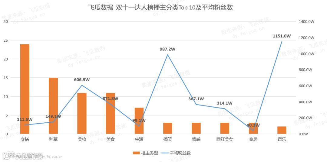 播主主要集中在穿搭、种草领域,其次是美妆、美食和生活,可见抖音双十一的消费主力还是以穿搭、美妆、日用百货这些女性为主的行业品类,女性依旧是短视频电商的主力军。