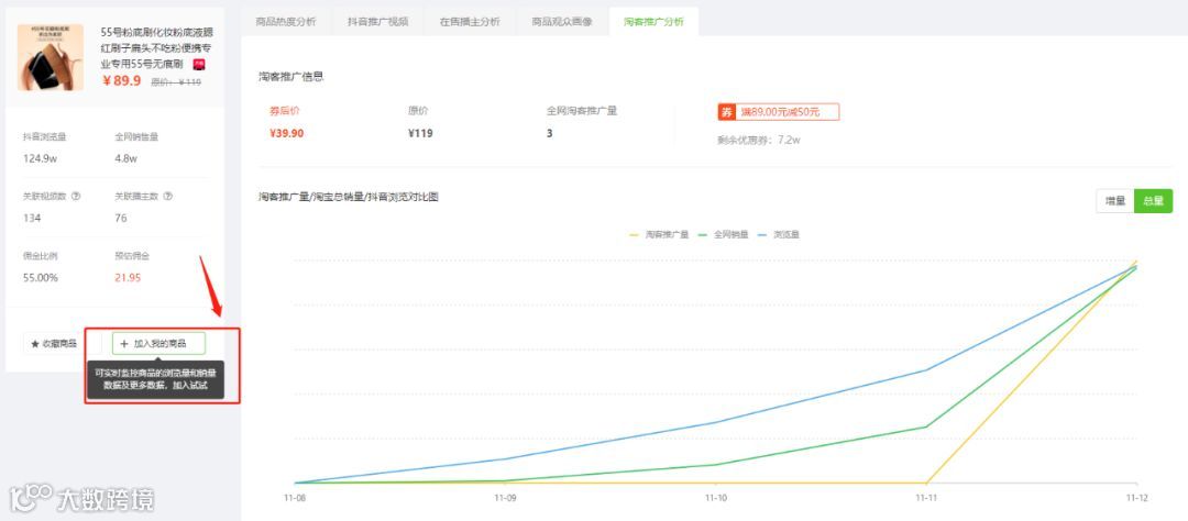 如果想要进一步实时监控这个商品的浏览量和销量数据,可以将该商品添加到【我的商品】中。