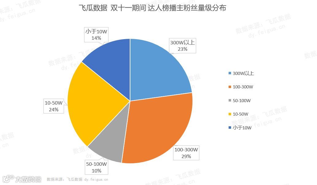 而从带货播主的粉丝量级来看,并非所有带货号的粉丝体量都很高,超过3分之1的播主粉丝体量低于50W。