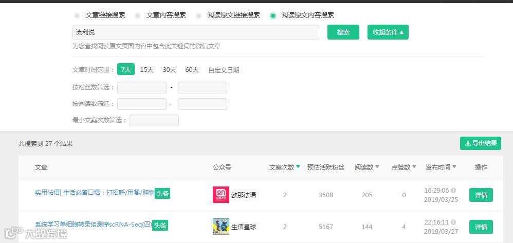 但为了获取更多有效流量,在第二阶段开始会用广告文案链接去搜索哪些公众号有接过,当然也会用关键词去搜索阅读原文模块有出现的关键词。