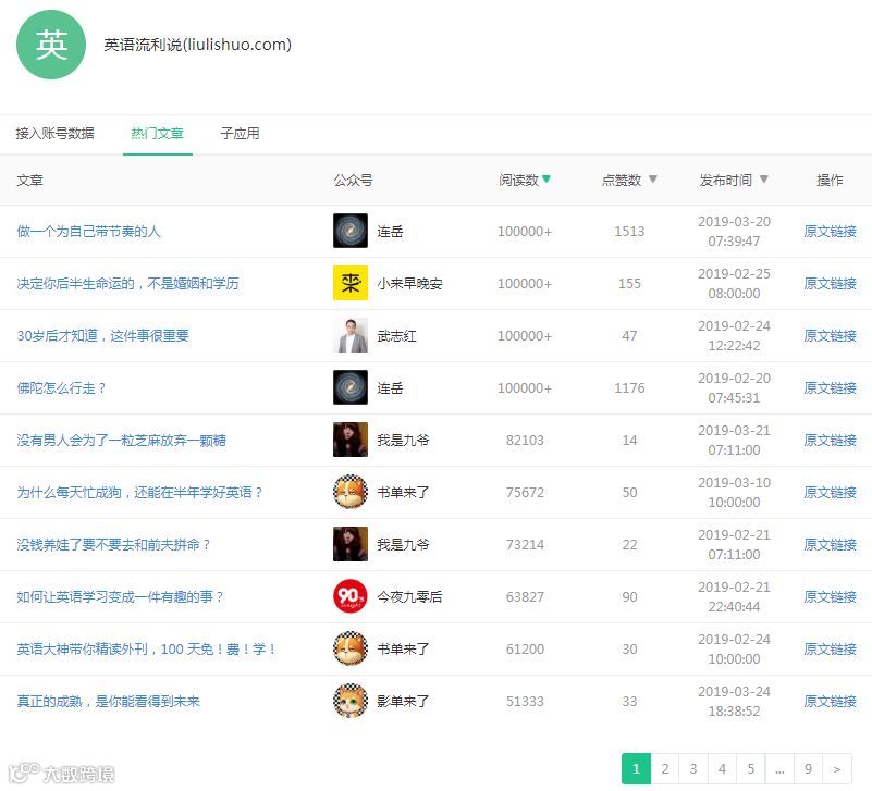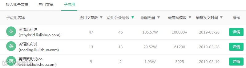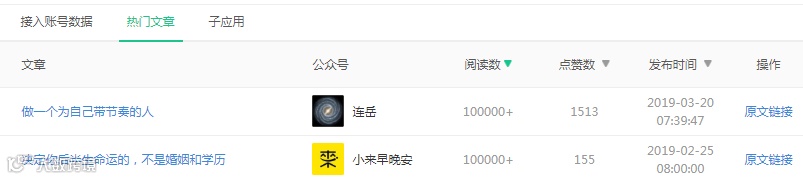可以通过“接入帐号数据”、“热门文章”、“子应用”三个页面深挖公众号数据,下面具体介绍。