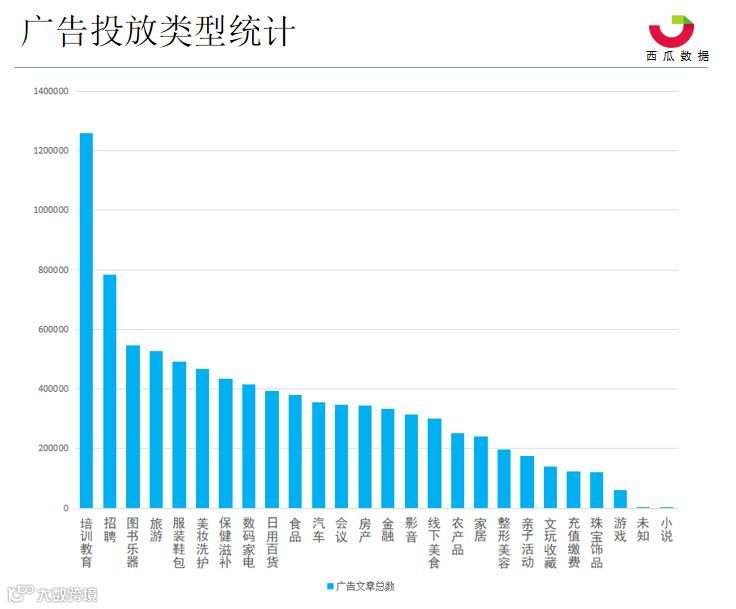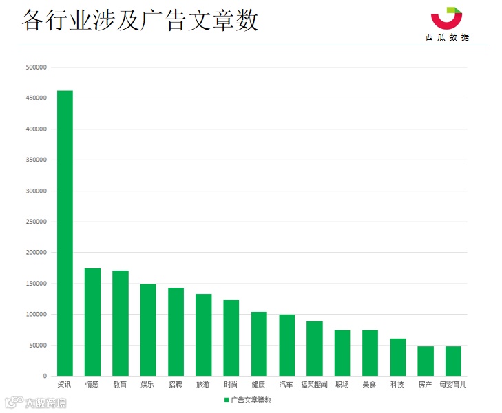 从统计数据来看,整个Q1季度接广告数最多的是资讯类、其次是情感和教育类账号。这除了和广告主进行精准对标投放外,也和不同行业公众号总数有关。