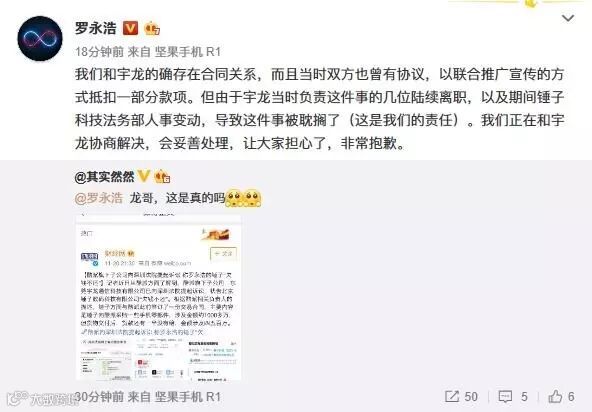 7、酷派状告锤子欠钱不还,罗永浩回应正在解决