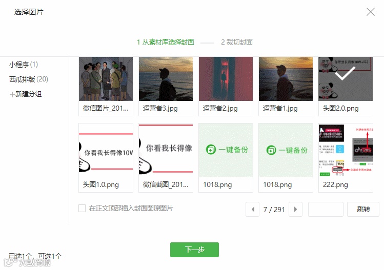 现在很多运营者都陷入一个误区,觉得1:1的封面只能在原有的头图里选。
