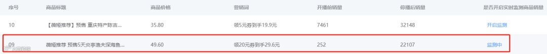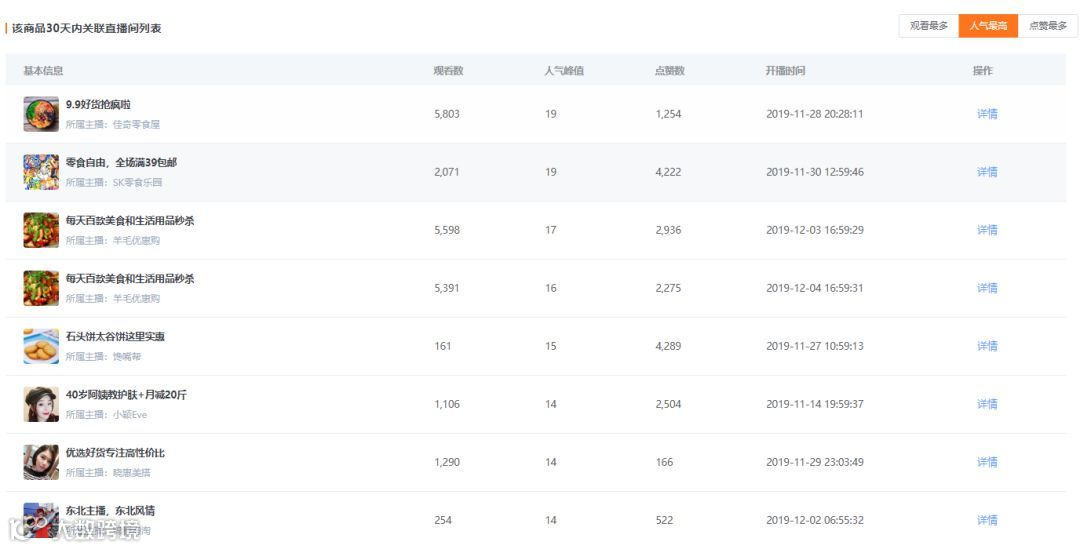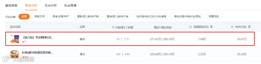 并且,通过该商品的直播分析可以看到,投放的这36个播主,在30天内与商品关联直播共有119场,在不降价的情况下,部分场次都能成交过万件,可以说投放的效果已经很不错了。