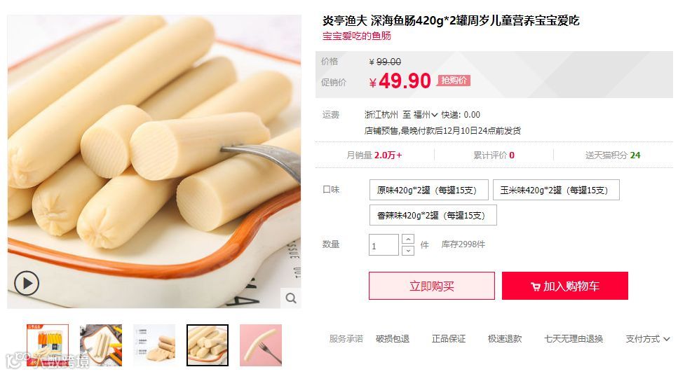 在零食专场里,原价为49.6元鱼肠在薇娅直播间卖29.6元,就算是20元的优惠券,以薇娅的带货率,一夜销售额过百万也绝对是赚了。