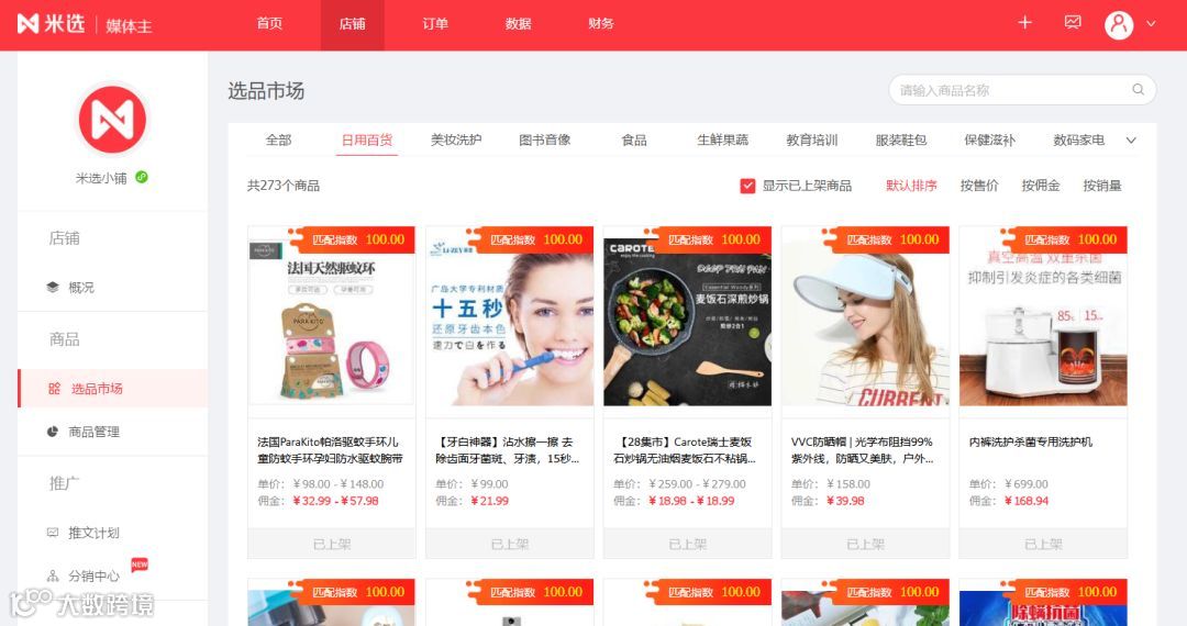 在内容电商崛起的风口期,优粉吧也基于自身大数据分析能力和AI深度学习能力,顺势推出了内容电商服务平台——米选,为媒体主提供更多变现渠道。