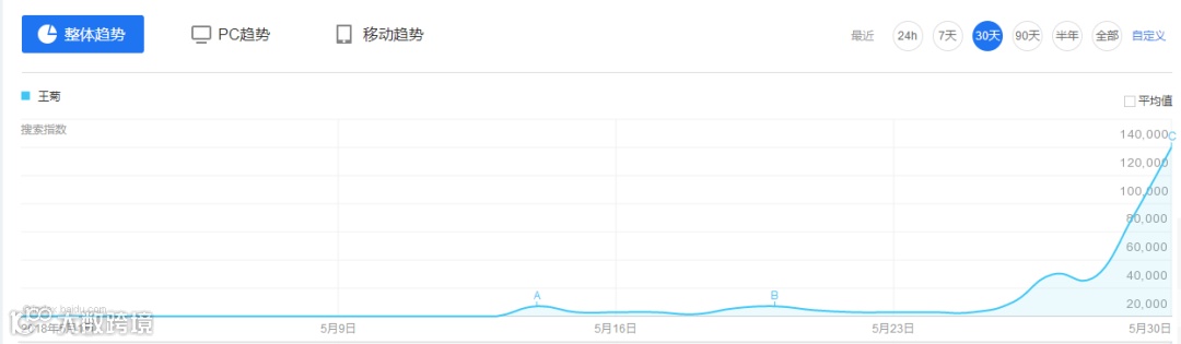 百度指数搜索王菊显示,百度搜索整体环比上升737%,从5月26日开始呈现持续上升趋势,并在29日出现了爆发式的增长。