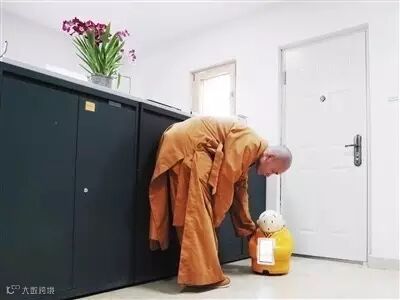 大约去年3月,有一个做机器人的科技公司到寺里禅修,他们提出想为寺里做一个扫地机器人,但是寺里要扫地机器人做什么呢?我们就想能不能做贤二。