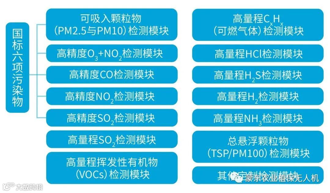 2.一次任务中,可同时采集最多9种空气污染物浓度并实时传输至无人机Sniffer4D Mapper软件