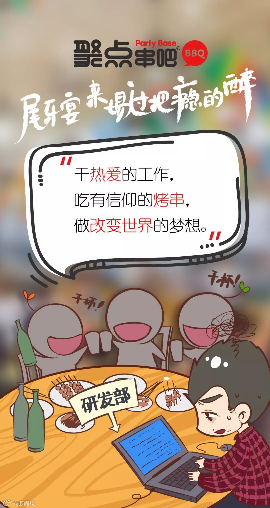 在优秀的产品和良好稳定的管理体系下,聚点串吧稳步提升,以”欢聚就要干一杯“为营销重点,场景化营销,打造朋友开心聚会、喝酒撸串的场合,进行品牌营销的全面升级。