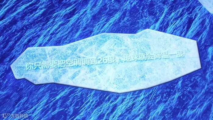 大海般的配色,走心的文案附着在形状像冰川的载体上,瞬间击中受众的内心,也让我们意识到,全球变暖,人人都可以出力,将空调调到26度,地球就会降温一度,一个小小的举动,就可以帮助改善这个问题。