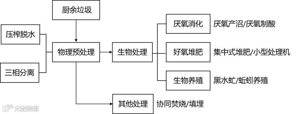 图1 厨余垃圾主要的处理技术路线