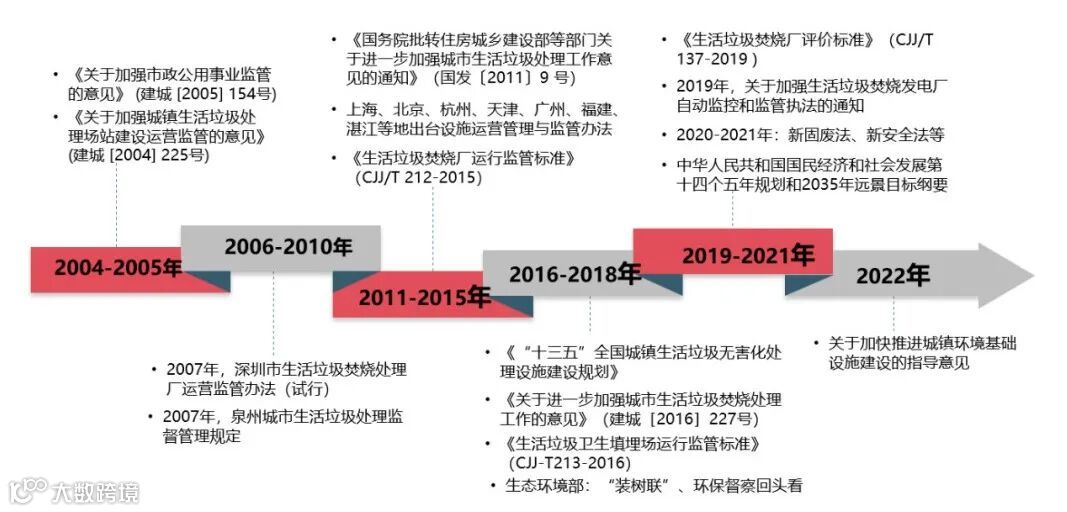 固废处置设施监管逐步迈入政策支持引导发展行业。2004年起,国家层面和地方政府对于生活垃圾处理处置设施运营监管相继出台了一系列法规标准。其中,《生活垃圾焚烧厂运行监管标准》(CJJ/T 212-2015)和《生活垃圾卫生填埋场运行监管标准》(CJJ/T 213-2016)极大程度支撑了生活垃圾处理设施运营监管工作,《中华人民共和国固体废物污染环境防治法》(2020年修订)和《中华人民共和国安全生产法》(2021年修订)从法律底线明确了要全面提升固体废物污染环境防治监管水平。目前,对于厨余垃圾处理厂、建筑垃圾处理厂等各类设施的运行监管标准正在陆续编制及立项中。该系列政策文件及法律标准可为规范各类设施安全、环保、稳定运营,有效保护生态环境,保障公众利益提供重要的保障依据。