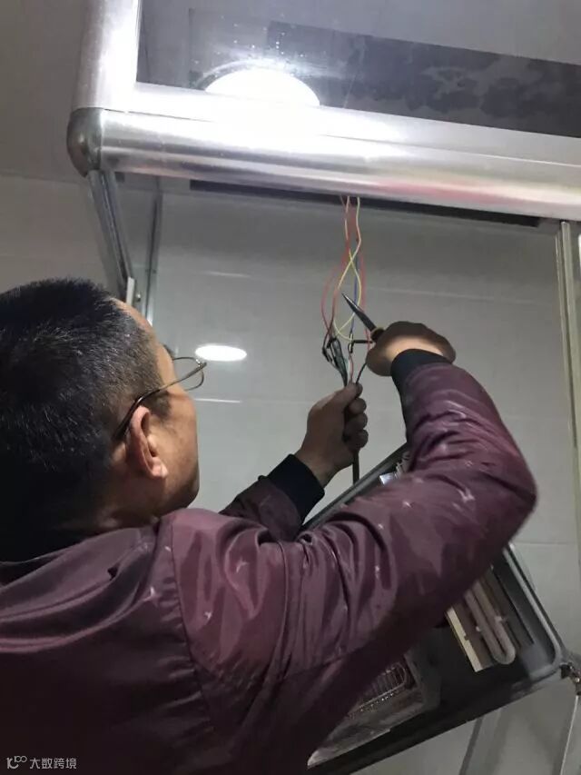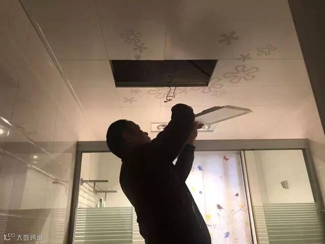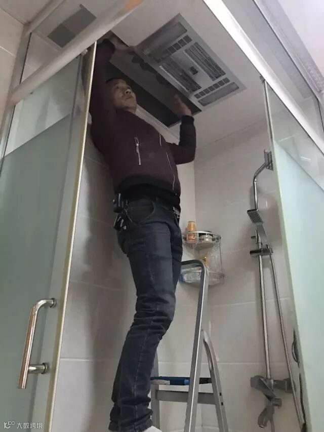 第一家是30幢的许师傅家。他特地请假回家修卫生间的排气扇及灯,正巧赶上我们的活动,便乐呵呵的带我们过去。