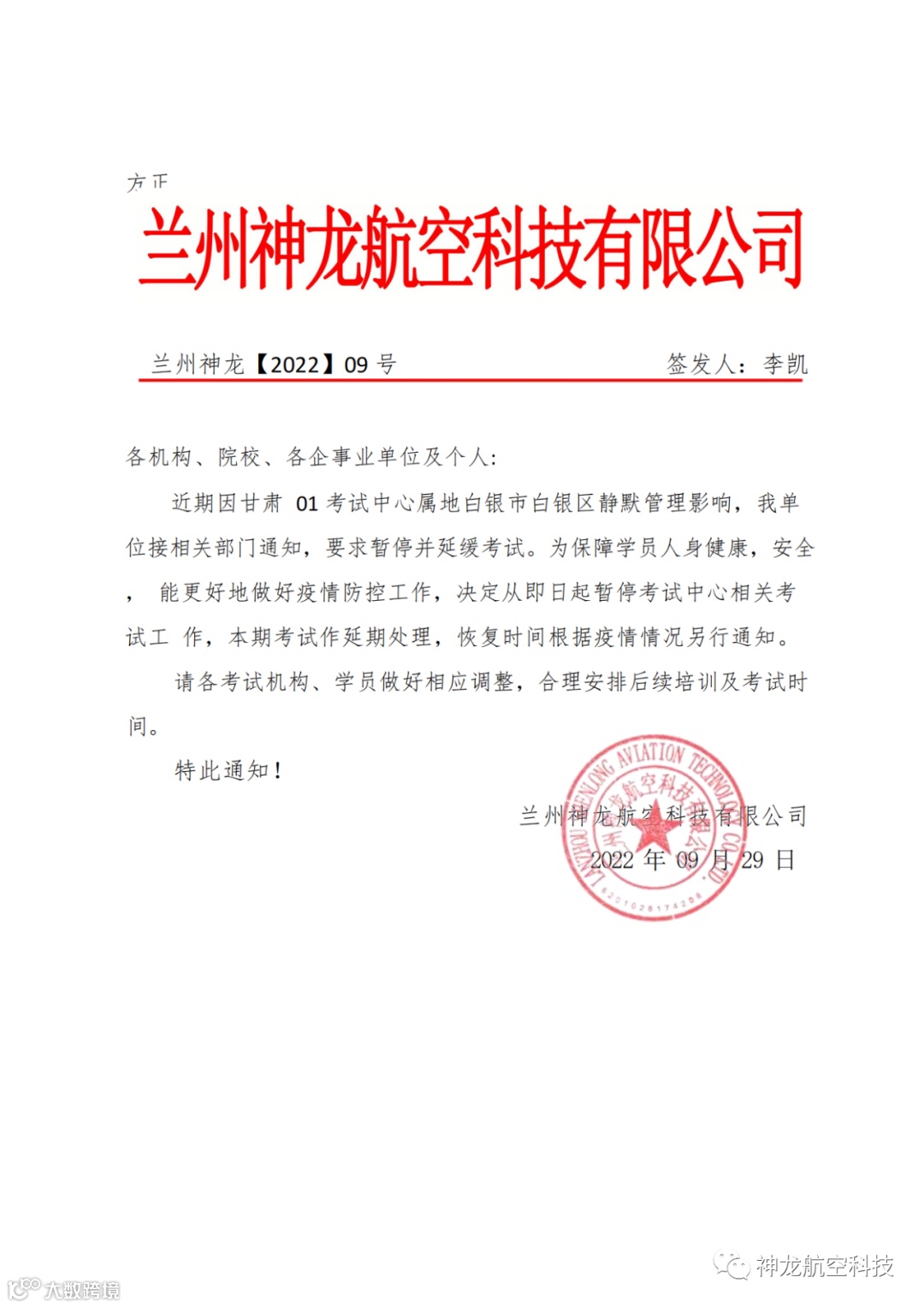 关于暂时延缓甘肃01考试中心相关考试工作的通知