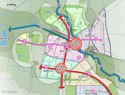 三角洲城市中心以泉、颍河为轴,以三角洲生态公园为中心,打造泉北半岛商务中心、形成阜阳核心商务商业圈;