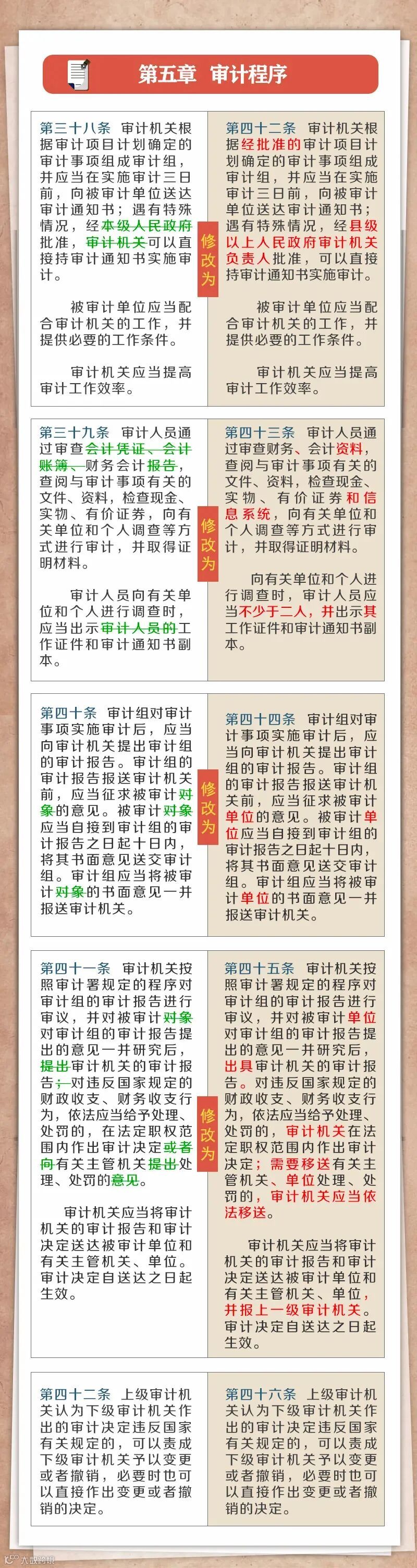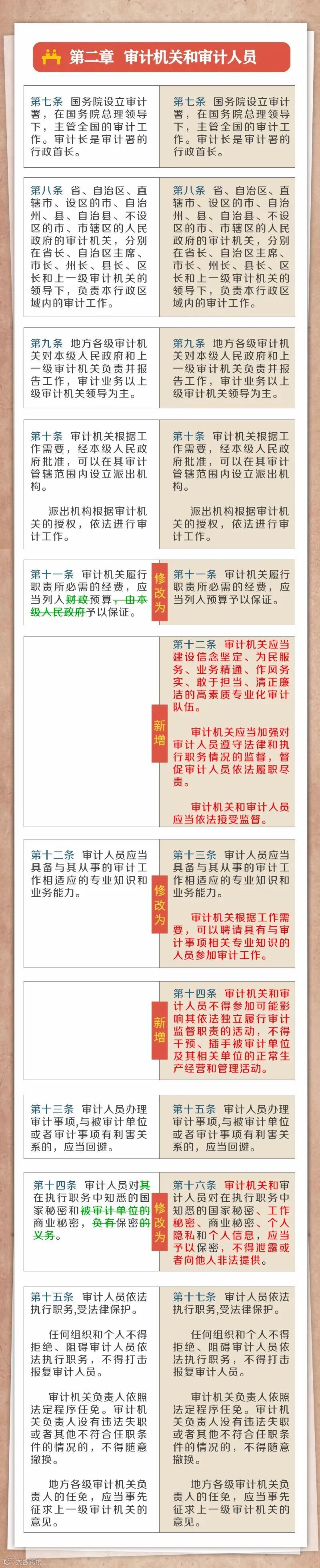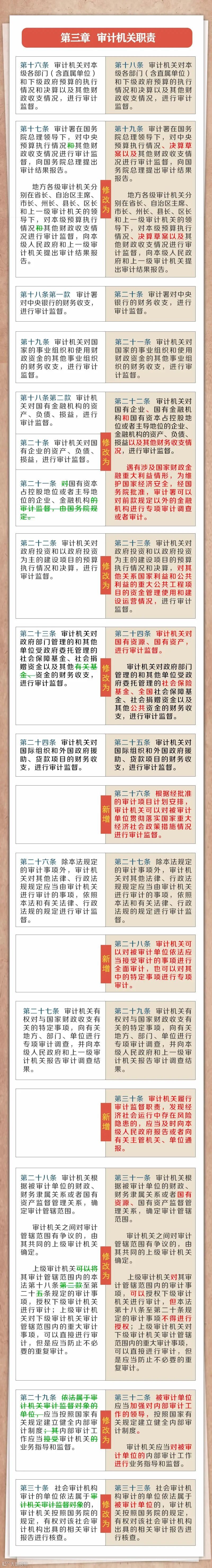 2021年《中华人民共和国审计法(修正草案)》(下文简称新《审计法》),较2006年修订版有诸多变化,笔者主要梳理为以下七个方面: