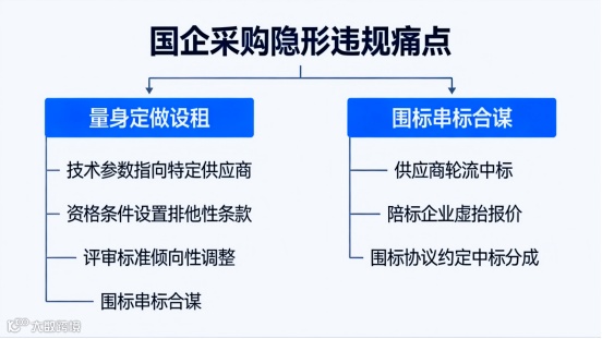 上一篇我们详细拆解了国企采购业务监督的7大核心环节、重点领域及管控难点,其中明确提到,隐性违规难排查、全流程闭环难实现、人为操作空间大等问题,是国企采购监督的核心痛点。而这些痛点,在采购招投标领域尤为突出,集中表现为“隐形变异”类违规行为,成为侵蚀国有资产、破坏采购合规性的主要隐患。今天,我们就聚焦这一核心问题,结合纪检监督实操经验,剖析问题根源、给出可落地的破解路径,承接上一篇监督重点,推动采购监督从“明确重点”向“破解难点”迈进。