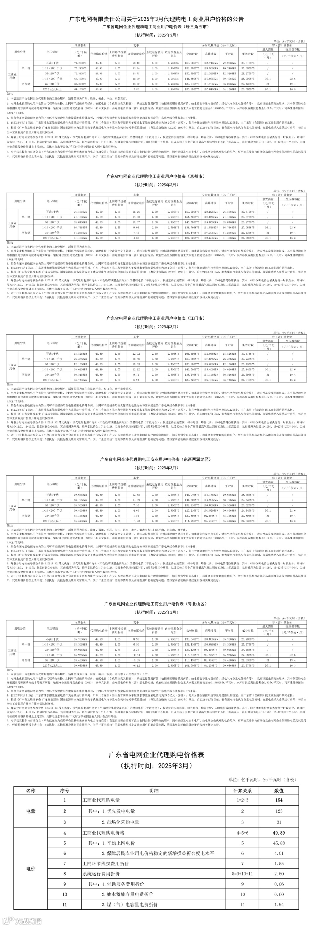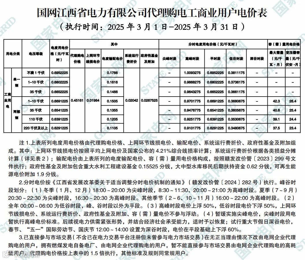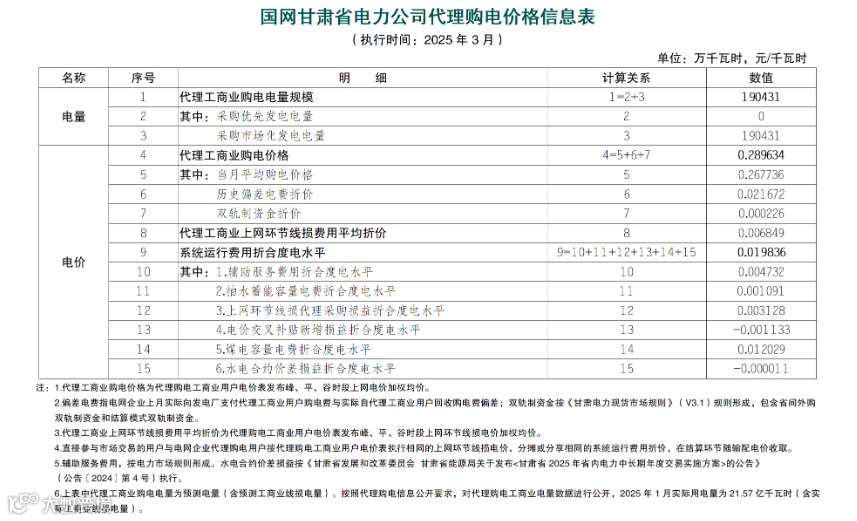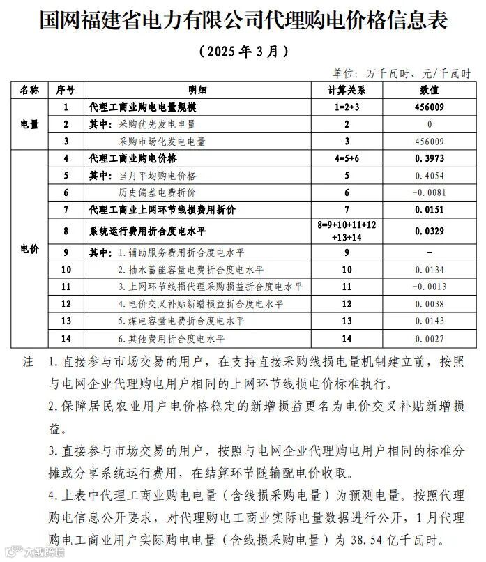 近日,全国各地2025年3月电网企业代理购电价格陆续公布。
