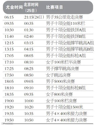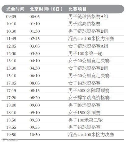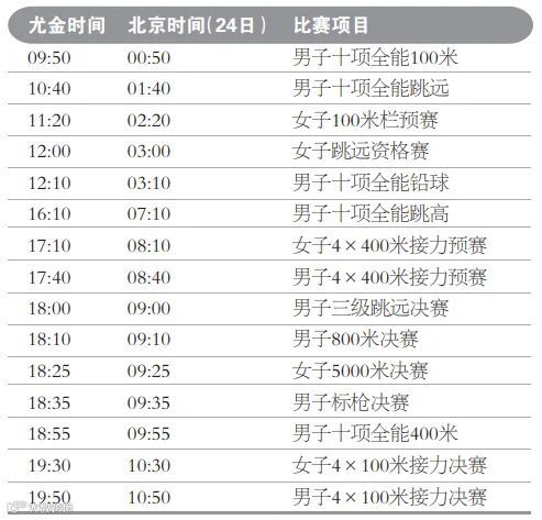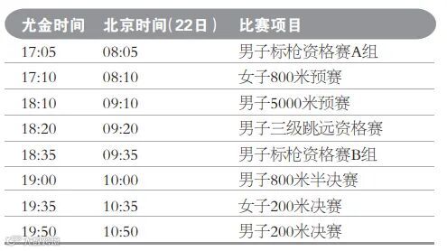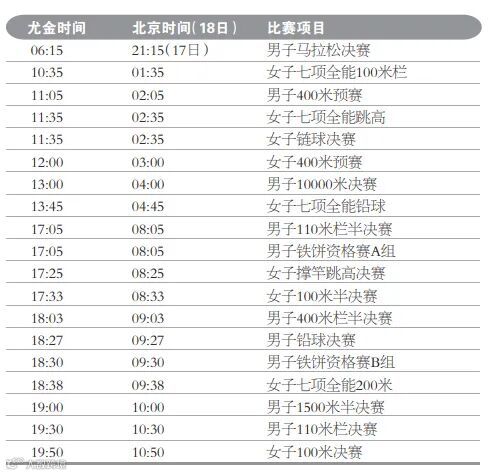 当前尤金处于北美太平洋夏令时间(PDT),比北京时间晚15个小时。为保持比赛日的完整性,本文中的每个比赛单元均以尤金当地时间为准。