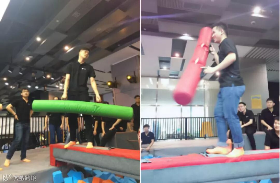 双方拿着软柱子,