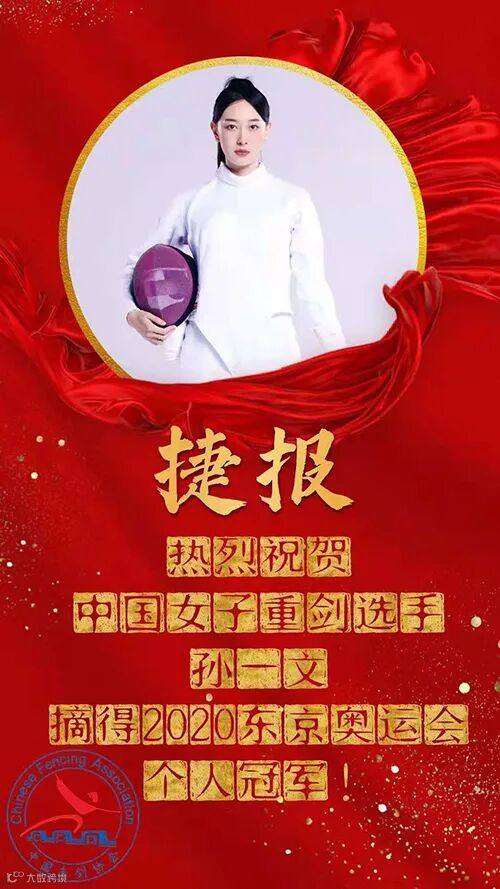奥运会女子重剑比赛中,中国选手孙一文获得冠军,为中国击剑队赢得本届奥运会的首枚金牌,这也是中国代表团在东京奥运会上取得的第三枚金牌。