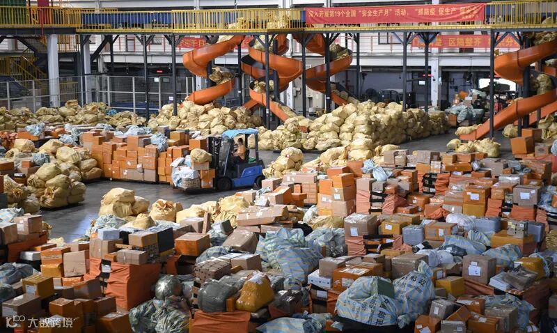 11月10日,在中国邮政集团广州航空邮件处理中心,工作人员在总包待发区内作业。新华社记者 邓华 摄