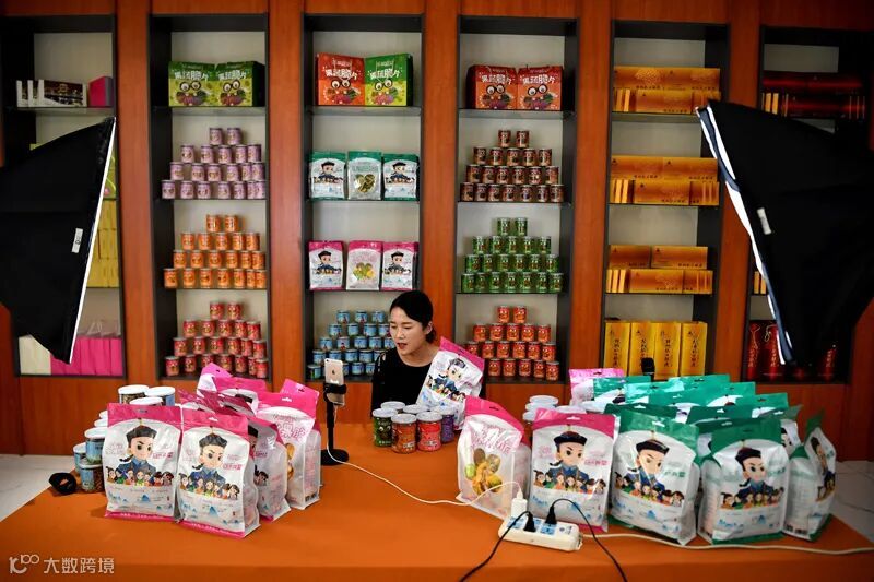 在陕西省商洛市丹凤县一家食品公司,主播在进行网络直播(7月20日摄)。新华社记者 刘潇 摄