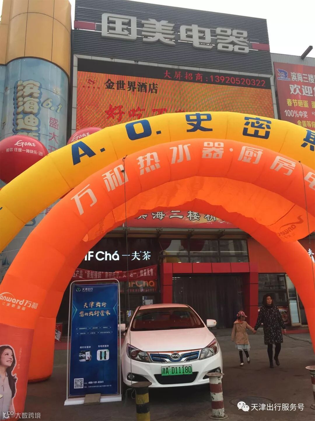 本次合作在2018年3月31日,天津市塘沽区国美电器外滩店,进行门前展示。