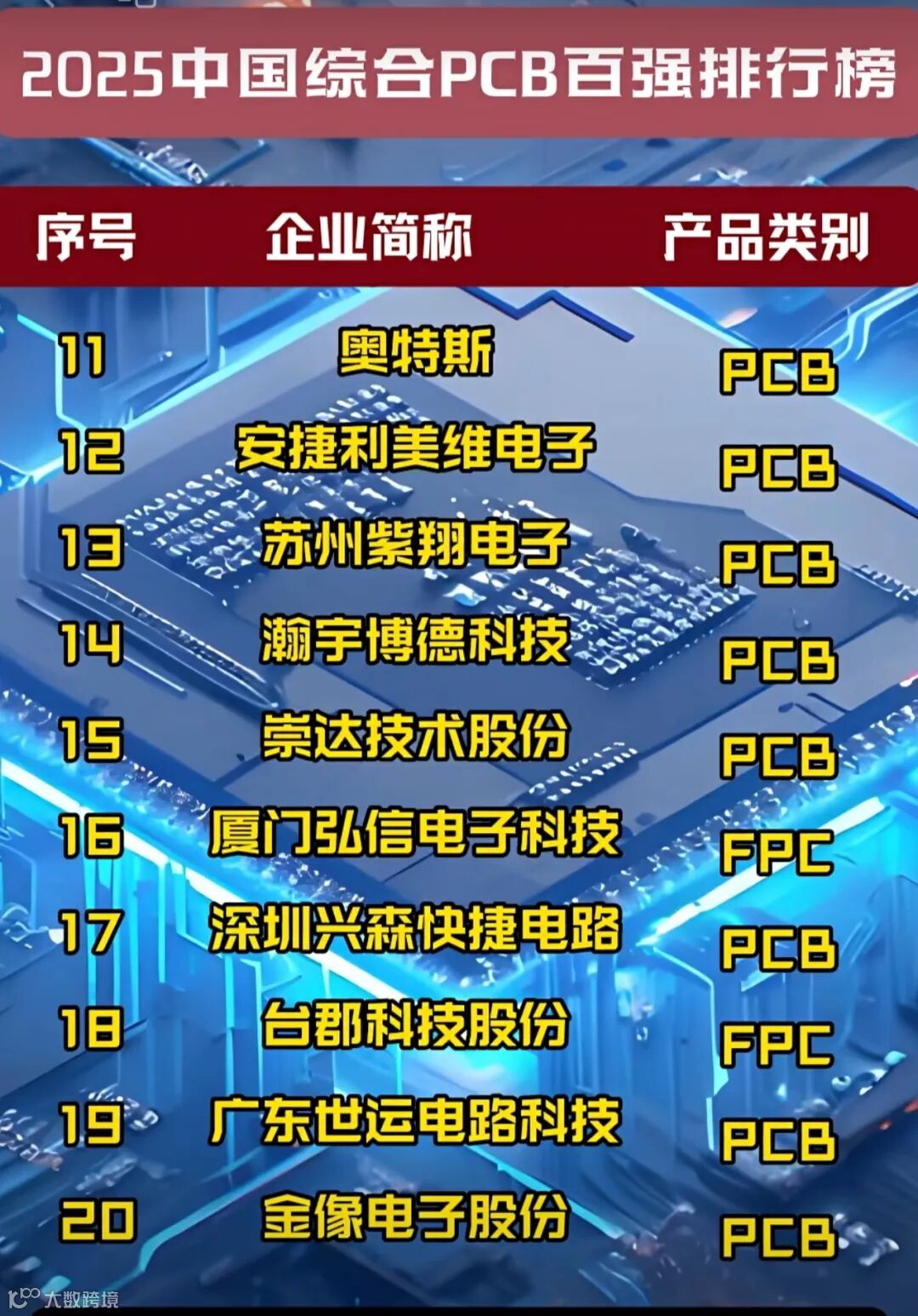 全球PCB王者是谁?2025中国百强排行榜告诉你 #PCB #PCB线路板 #印制电路板 #PCB设计 #线路板企业 #制造业 #鹏鼎控股 #苏州PCB #东山精密 #深南电路 #沪士电子 #景旺电子 #华通电脑 #建滔集团 #胜宏科技 #欣兴电子 #奥特斯 #安捷利美维电子 #苏州紫翔电子 #瀚宇博德科技#崇达技术 #厦门弘信电子科技 #深圳兴森快捷电路 #台郡科技股份 #广东世运电路科技 #金像电子股份 #专精特新 #单项冠军 #专精特新小巨人 #商业 #人工智能 #半导体 #机器人 #高新技术企业 #PCB百强企业 #知识产权 #核心零部件 #核心元器件 #高科技企业 #HDI #FPC #高密度互连板 #高多层电路板 #柔性电路板 #产业链 #AI #机器人 #新能源 #SMT行业头条亚仔哥 #汽车电子
