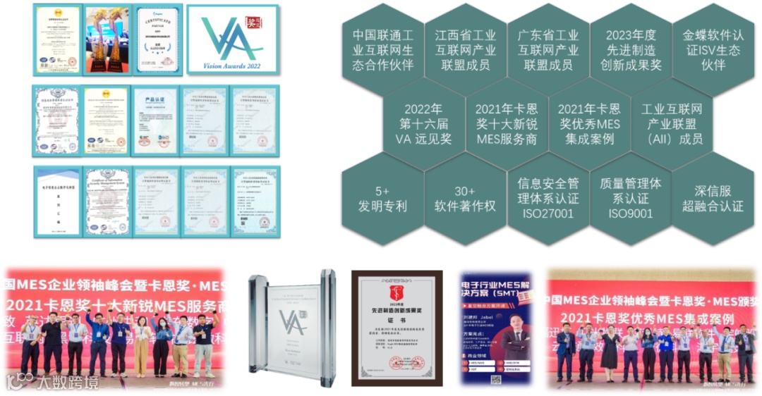 近年来,易联软件有幸荣获卡恩奖优秀MES集成案例、十大新锐MES服务商、2022年第16届VA远见奖、2023年度先进制造创新成果奖、金蝶软件认证ISV生态伙伴等荣誉。