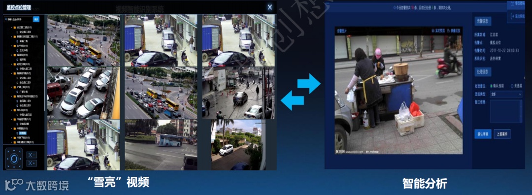 采用深度学习、图像识别等技术,结合城市海量监控摄像设备,对社会治理中出现的店外经营、违规停车等多类违规违法行为,进行智能识别、实时预警,实现智能化监督、精细化管理。