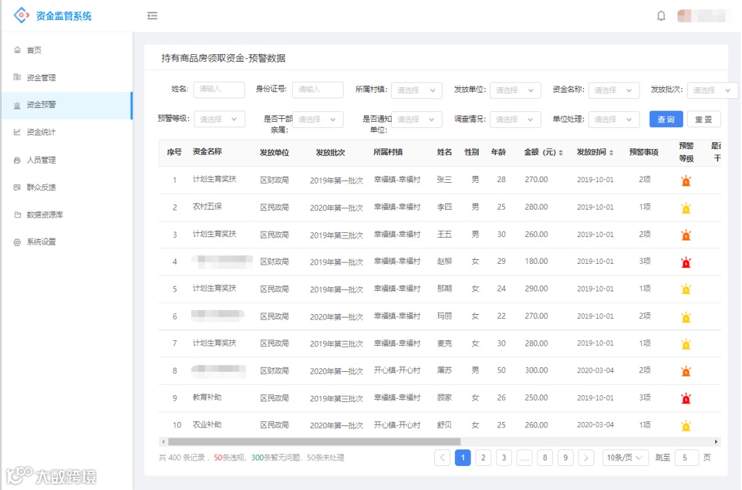 下面将着重介绍智能预警功能在民生资金监管领域的独特体现: