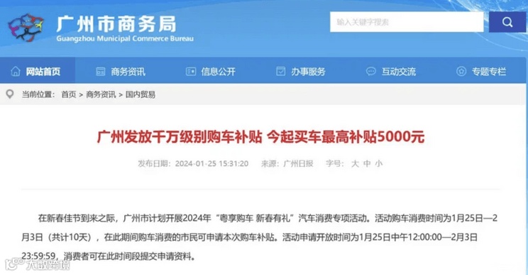 日前,我们从广州市商务局获悉,在新春佳节到来之际,广州市计划开展2024年“粤享购车 新春有礼”汽车消费专项活动。活动购车消费时间为1月25日―2月3日(共计10天),在此期间购车消费的市民可申请本次购车补贴。活动申请开放时间为1月25日中午12:00:00―2月3日23:59:59,消费者可在此时间段提交申请资料。