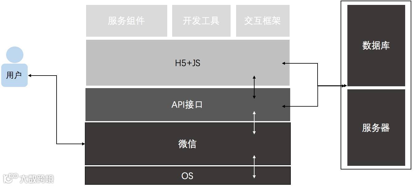 如果你打算接入小程序了,你可以试着了解下这套玩法的基本架构和逻辑关系。用户会频繁和微信交互,微信也会频繁与OS交互,当然微信也通过API的方式来获取第三方的数据,并且通过服务组件、开发工具和交互框架来定义小程序的交互样式、展现方式和扩展功能。