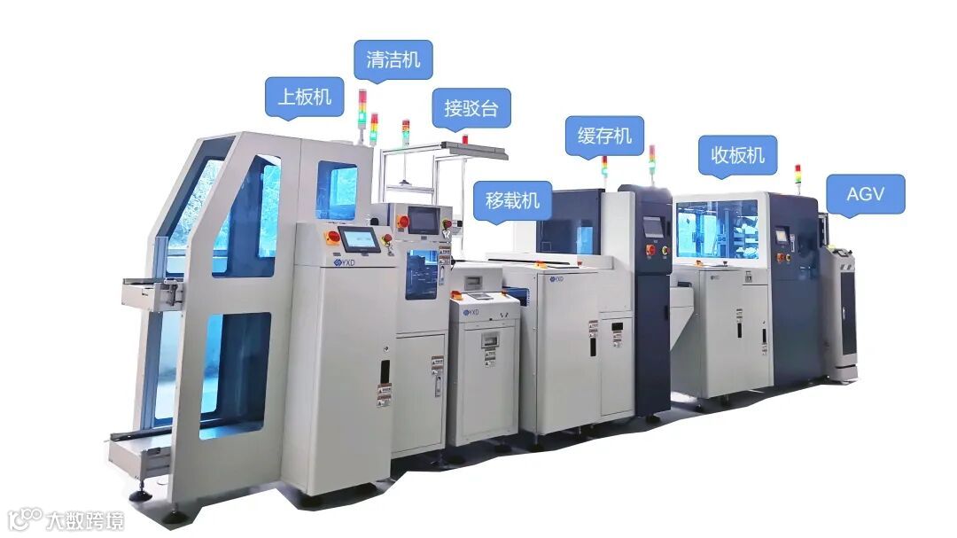 永信达SMT 智能线体,为中国智造添砖加瓦, 全自动扫描二维码轨道调宽系统,dvpAGV对接上下板机。